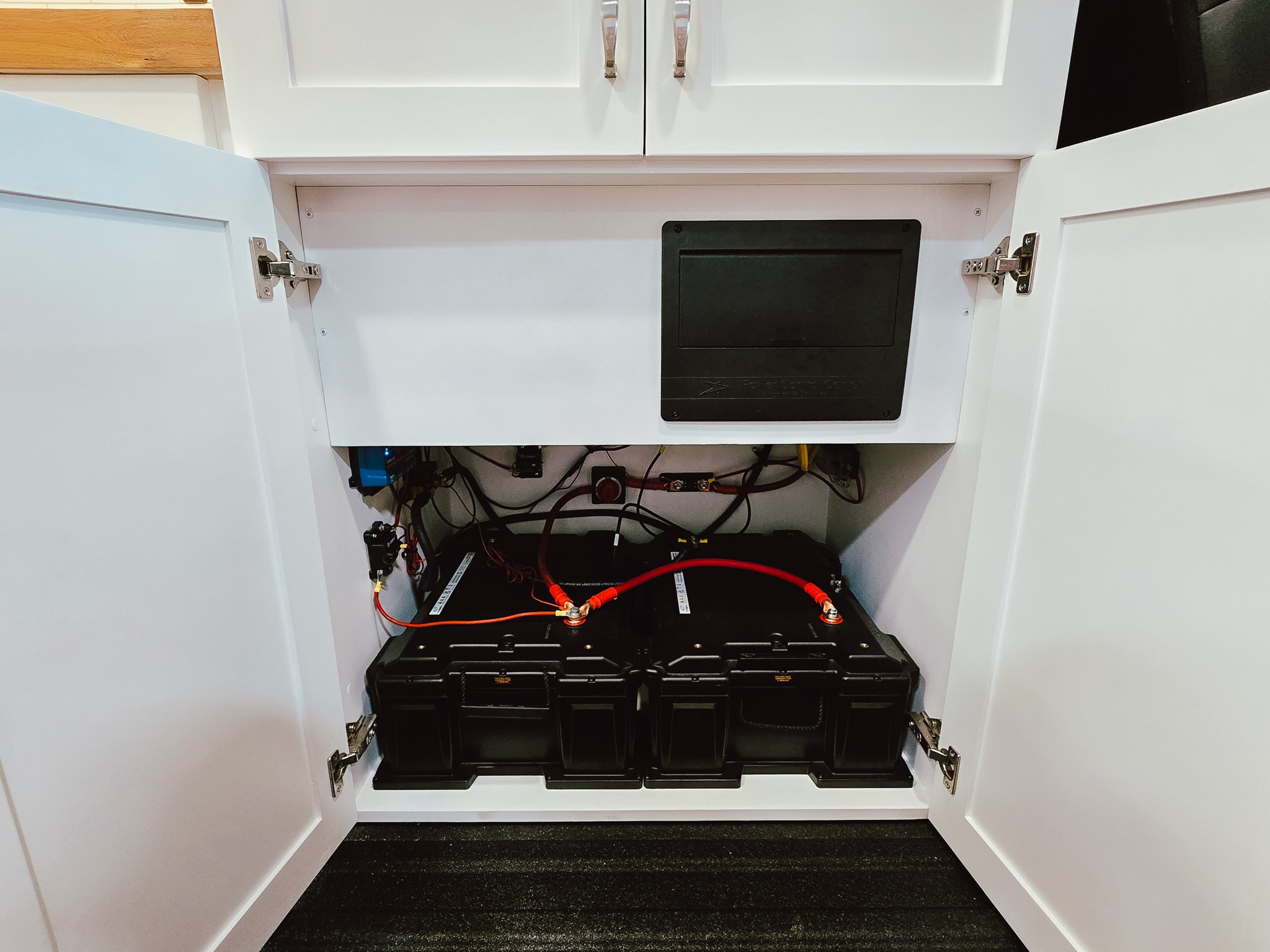 To ensure the van operates off-grid, our service department installed a cutting-edge power system, showcasing our expertise in RV electrical upgrades.