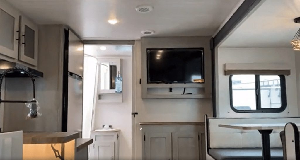 Notably, this RV boasts a queen-sized murphy bed that can remain “down” full-time without obstructing the slide, making it an ideal choice for travelers seeking convenience during overnight stops and stays.