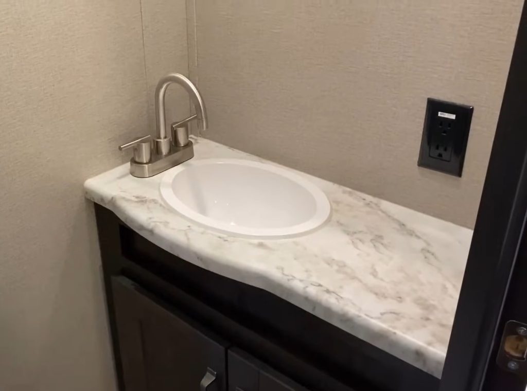 The small half bath in the bunk house is a game-changer, especially when you’re camping with multiple people.