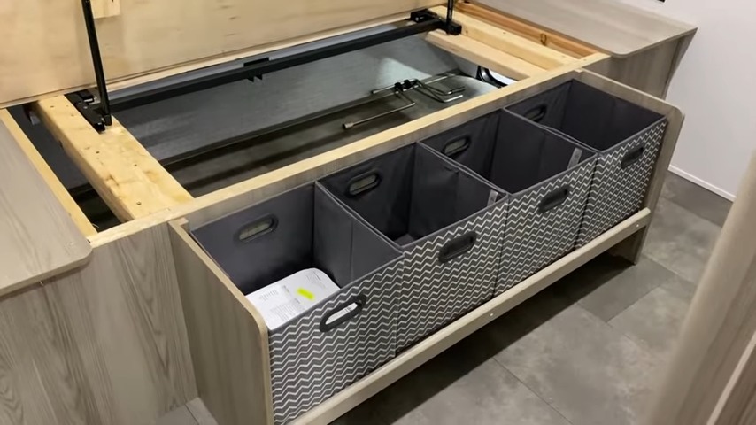 What looks like a quad bunkhouse transforms into whatever you need it to be. Bunks, sofas, craft space, storage – you name it. The icing on the cake here is that it all folds up and collapses very easily. It’s not a huge process to create variations in how you use the space.