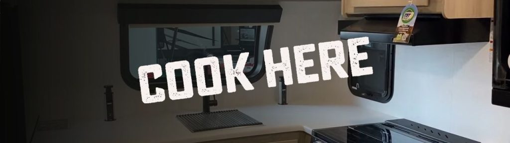 The real star of the show is the front kitchen, complete with a full-size 21-inch oven. And that’s not all; it also features a 12-volt fridge, perfect for keeping your goodies chilled while you’re off the grid.