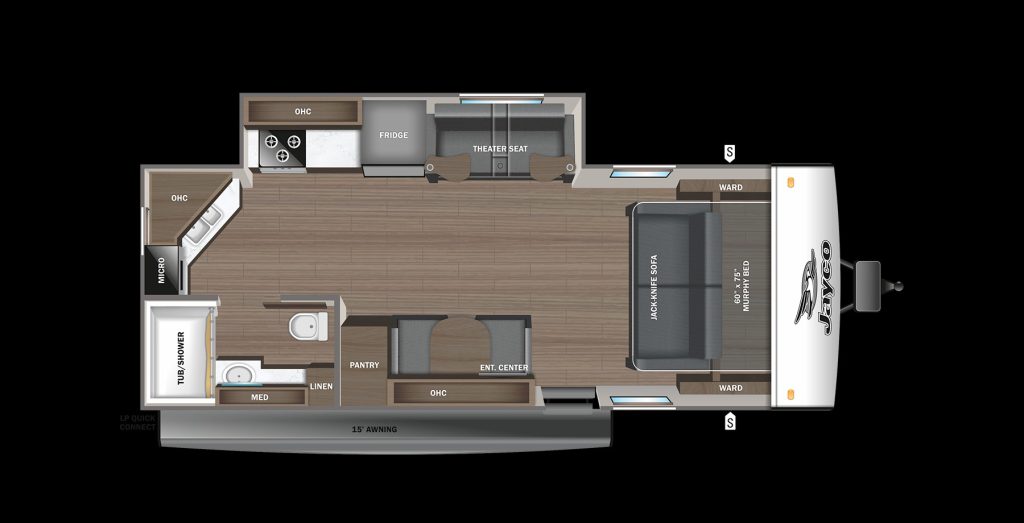 Cooking in a kitchen with lots of counter space and storage is a game changer. That’s exactly what you get with the 22RKHL. The kitchen slide-out gives you room to whip up delicious meals without bumping your head. And for snacks or cold drinks, there’s a big fridge outside, just perfect for those sunny days.