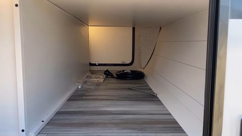 A 60″ x 75″ Murphy bed fits this RV’s compact design. If you’re tall you might find it a bit short, but it’s a comfortable option for many.