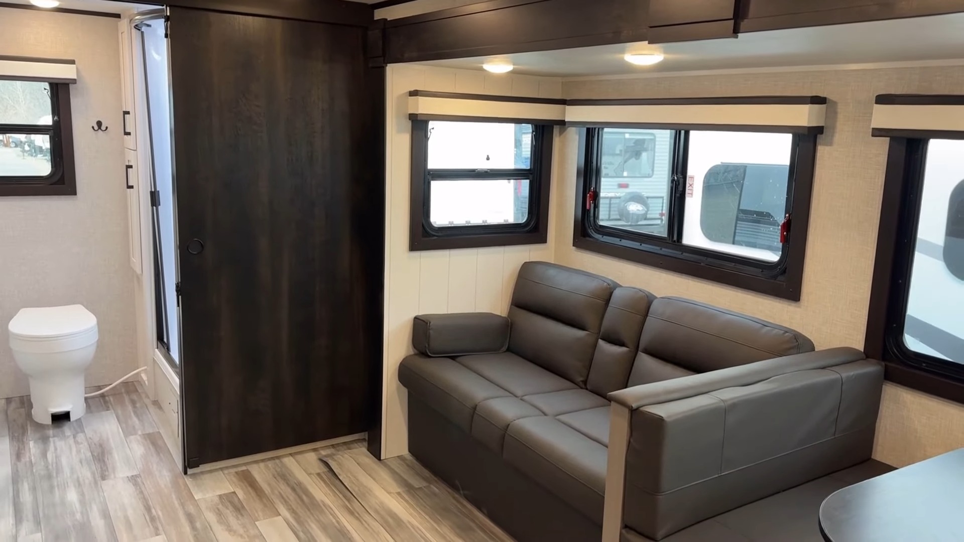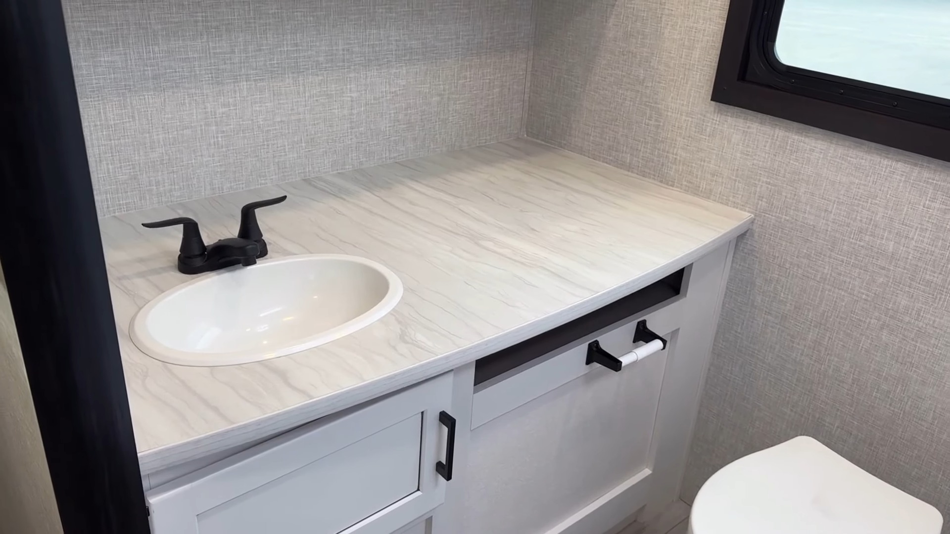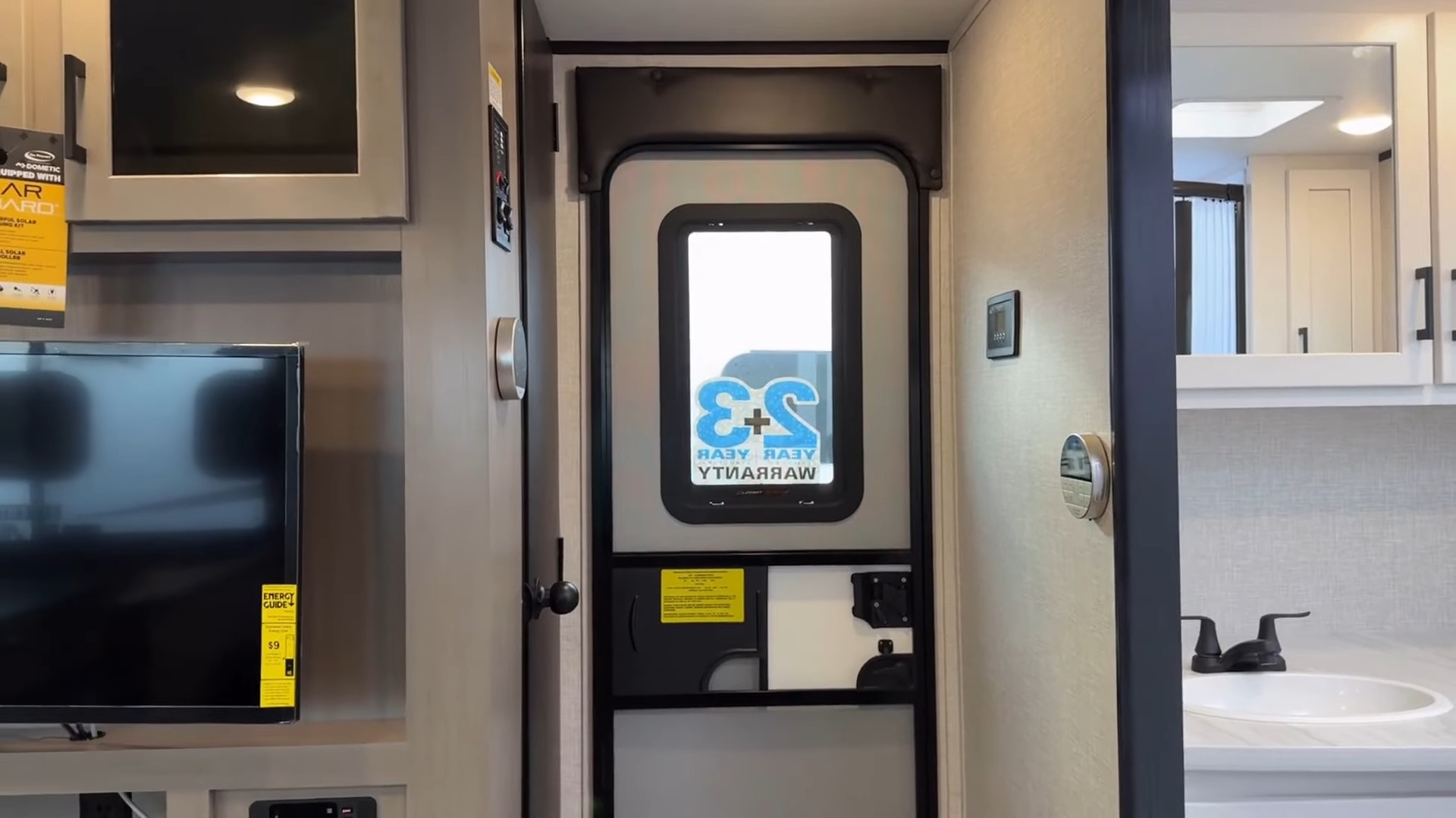 The RV is easy to keep clean, has lots of storage space, and the bathroom is big enough to move around comfortably.