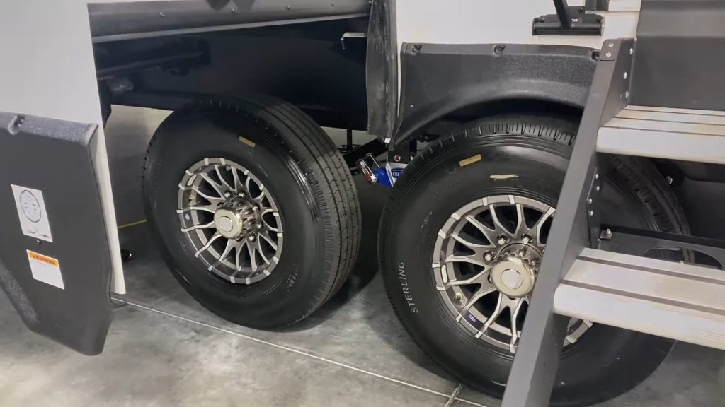 The RV also includes a six-point hydraulic leveling system and a 3,000 lb towing hitch package.