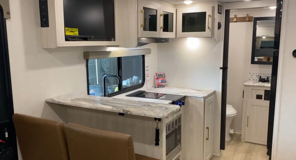 The inclusion of a tankless, on-demand water heater means you’ll never run out of hot water during your outdoor adventures.