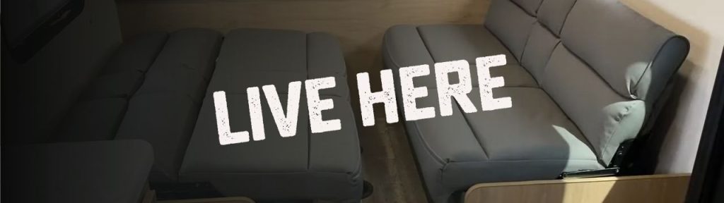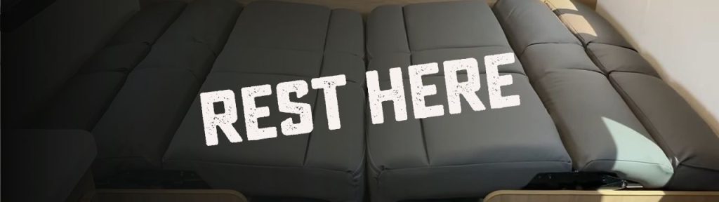 The unique feature of this RV is its adaptable sleeping arrangements. While it may not have a traditional fixed bed, you can use both sofas to create a large sleeping area.