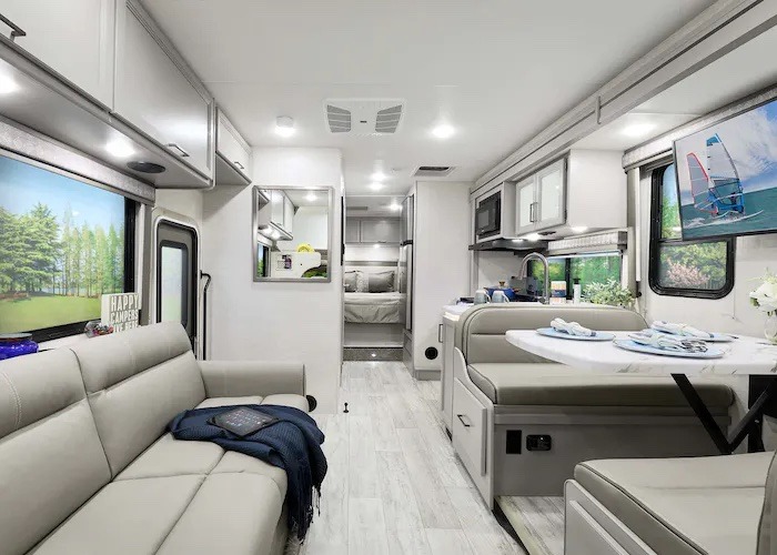 The Thor Chateau class C motorhome offers an exceptional blend of home-like comfort, expansive living spaces, and feature-rich interiors, all within a compact, easy-to-drive package.