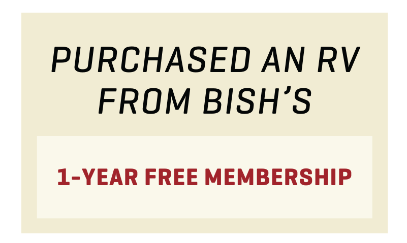 - New RV Purchase: All RVs purchased from Bish’s will include a free one-year membership to RVFix.