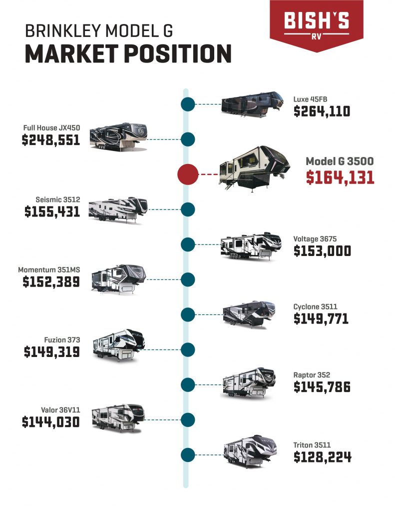 When you buy makes a difference in what you pay for an RV. This is especially true for a newly launched product like a Brinkley fifth wheel. As demand for Brinkley RVs increases, we expect the supply to thin out and the price to increase.