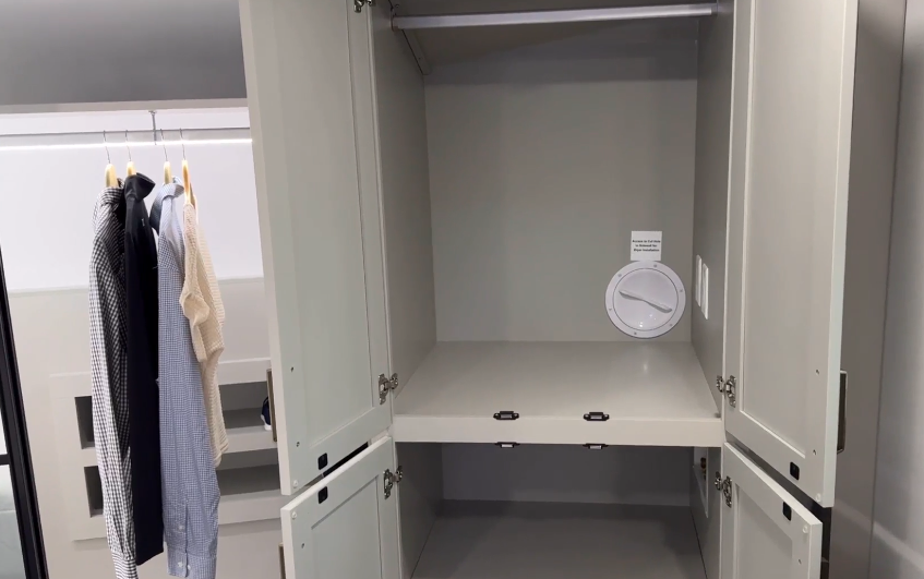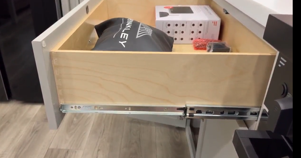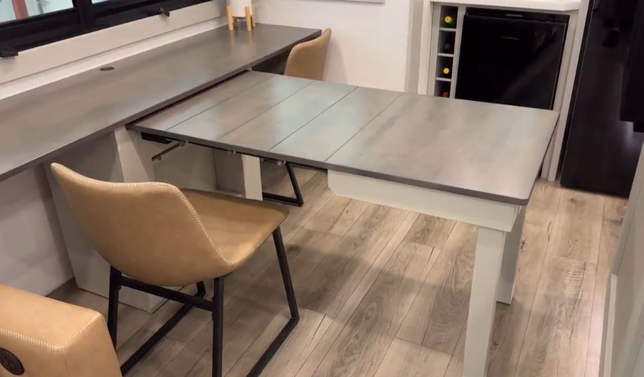 The beverage center with 12v mini fridge will be the talk of the campground! Whether you prefer a wine bar or coffee station, or swapping this out for a dishwasher – this dedicated space offers plenty of options that will make RV living more desirable.