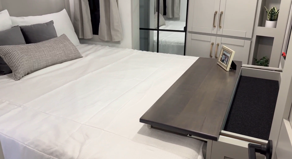 Brinkley RV sets itself apart by designing features with real-world functionality, thanks to its team of RV enthusiasts who understand the needs of travelers. One standout innovation is the bed slide, which allows comfortable sleeping even when retracted—a rarity among towable RVs. This thoughtful design accommodates overnight travel stays without compromising convenience.