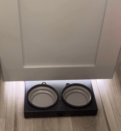 Indirect lighting and pull-out storage with removable pet bowls are the understated details that make a big difference!