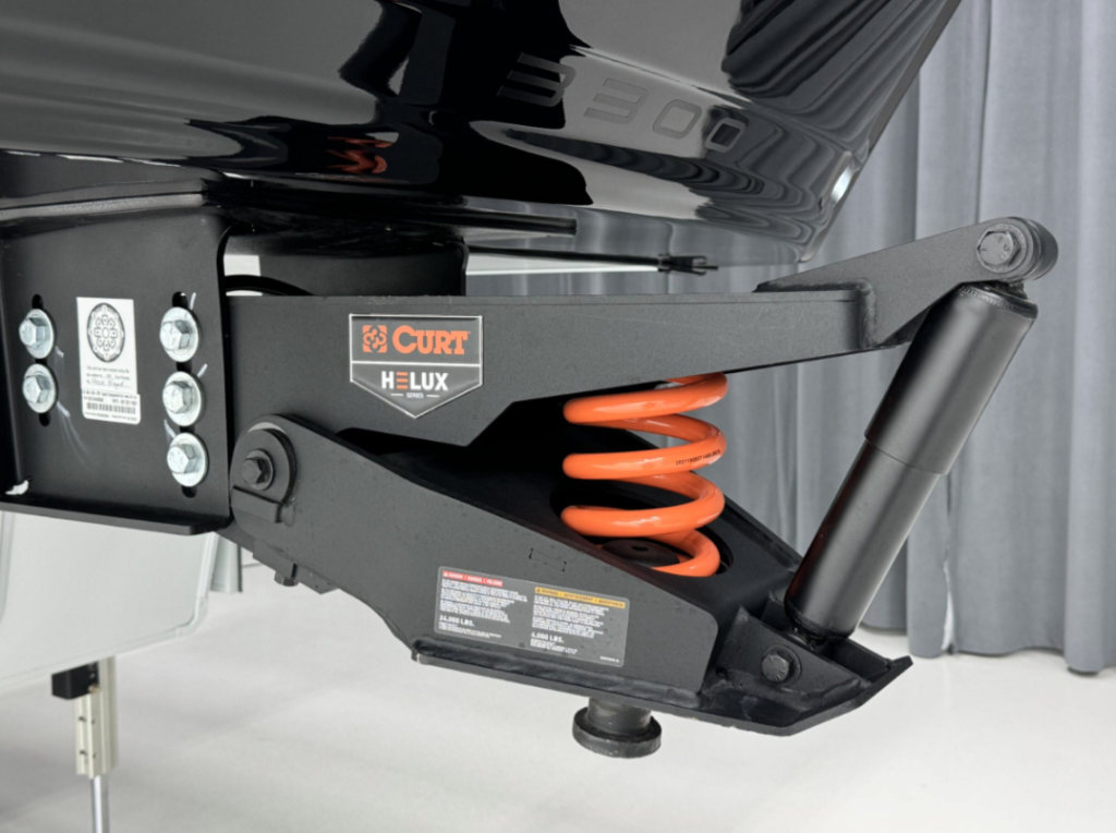 The CURT Helux 5th wheel pin box delivers a 30% reduction in force into the RV frame and body.