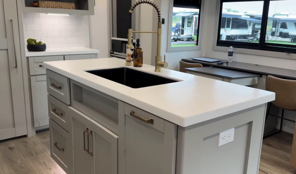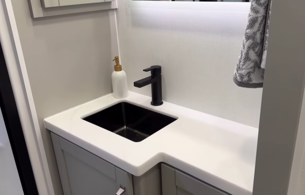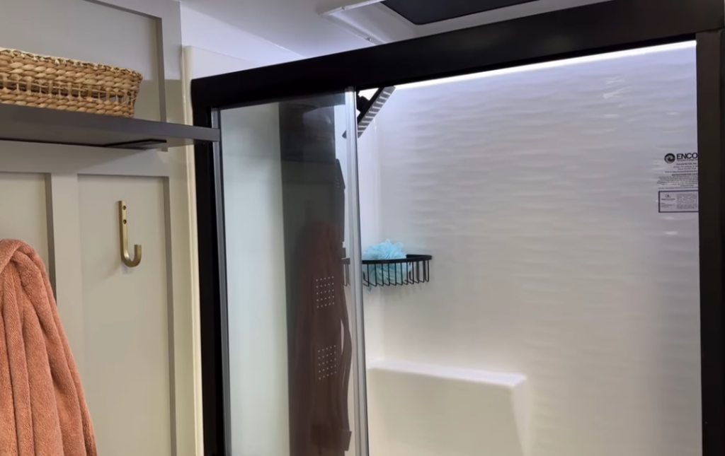 Not only does the bathroom design meet the practical needs of RVers but Brinkley ensures it will be done with style and efficiency!