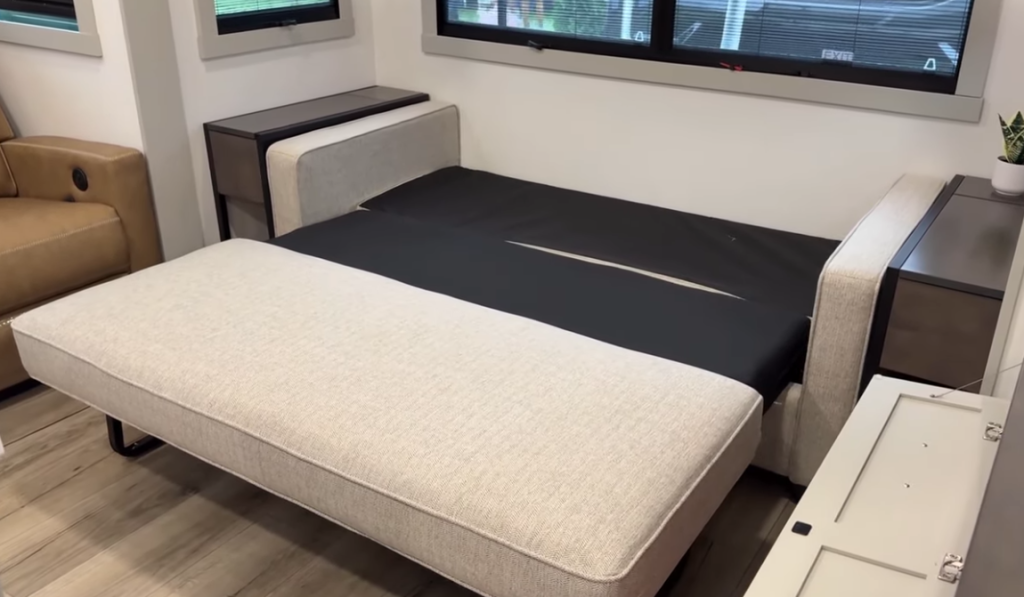By day, it’s a comfortable seating area. By night, it transforms into a spacious 62″x70″ sleeper, comfortably accommodating overnight guests or providing an alternative sleeping space.