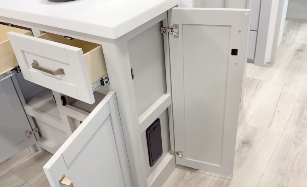 The built-in pet dish tray with collapsible bowls, magnetically lock into place for easy travel! Brinkley understands that your furry friends are more than just a pet, they are RVers too!