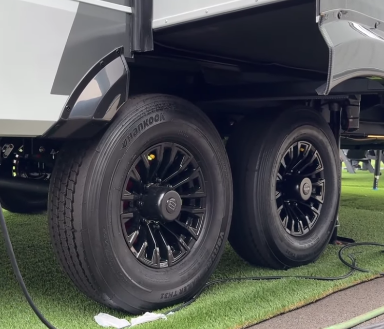 Heavy-duty 7,000 lbs. axles with G-rated Hankook tires and 16″ aluminum custom wheels