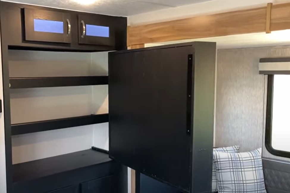 Although the radius shower may not cater to everyone’s preferences, it does provide ample headroom for individuals up to 6 feet tall (like Josh the RV Nerd), ensuring a comfortable showering experience. Furthermore, the bathroom is equipped with a window, allowing natural light to brighten the space and offering ventilation for a refreshing atmosphere.