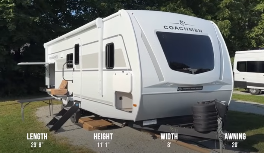 The 252RBS is equipped with an oven with a three-burner stove, and a glass top that allows for camping meal preparation.