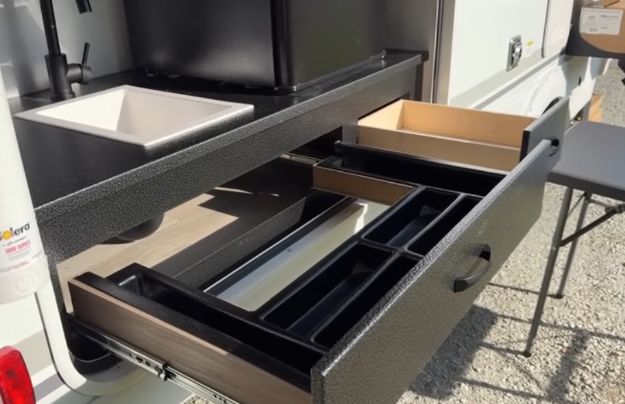 Whether it’s a quick rest stop or a late night overnight stay, the road mode option puts this trailer at the top of road trip convenient list.