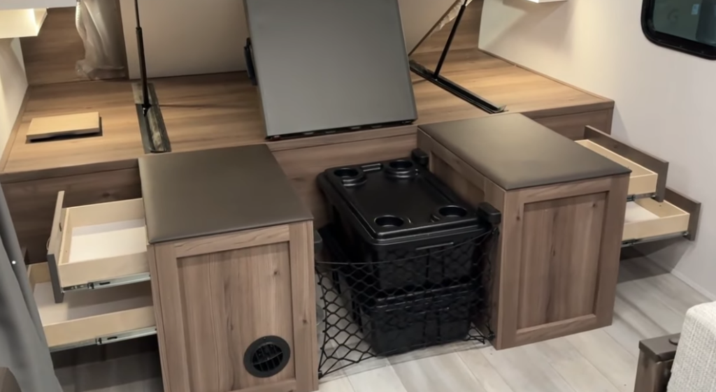 - Enhanced Storage Solutions: Carefully planned storage spaces throughout, including innovative solutions for laundry and camping gear