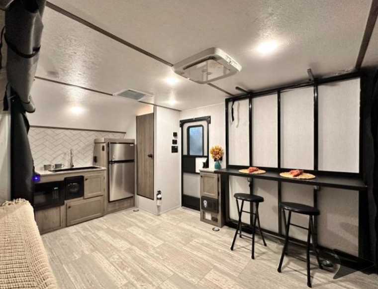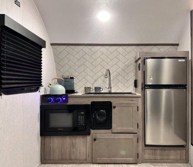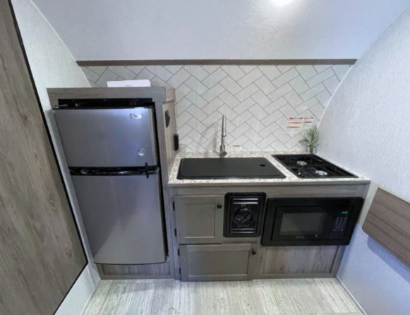 This camper maximizes every inch of space, offering the impressive “at-home” amenities that are rarely found in compact trailers.