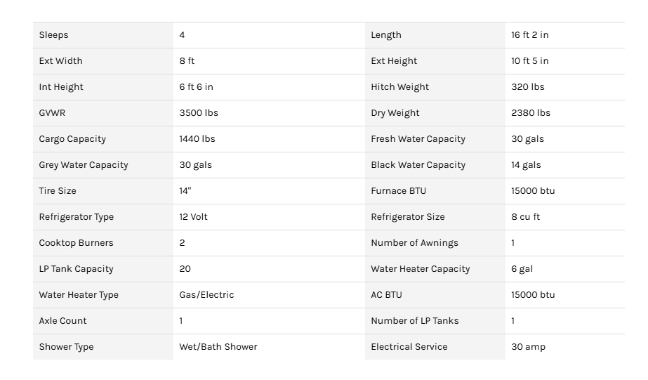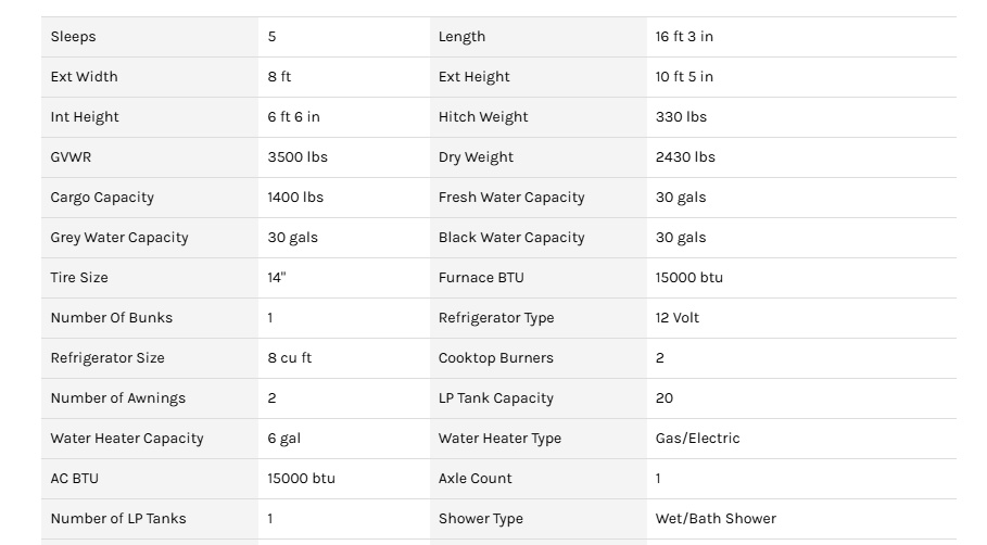 Bring the kids and make memories in style! With sleeping space for five, a full bathroom, and clever storage – this 16 foot trailer offers everything you need and more!