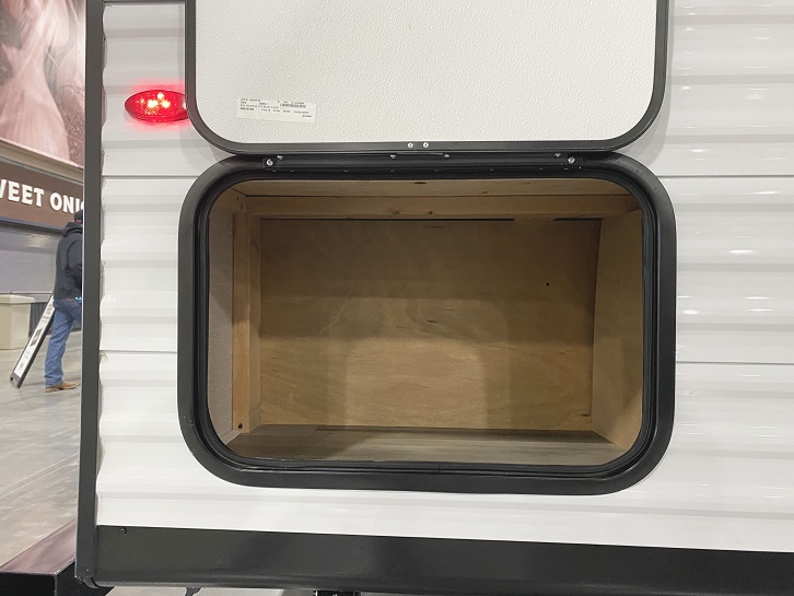 - The rear storage compartment baggage door is on the entry side and offers more storage space for your family camping trips.