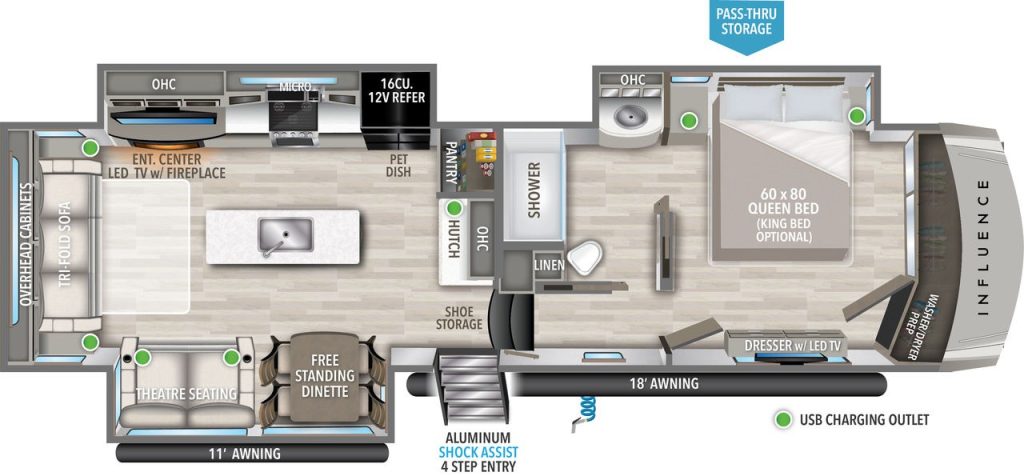 The Influence Series is basically the Solitude S Class with a new identity – you’ll find different décor and new floor plans.