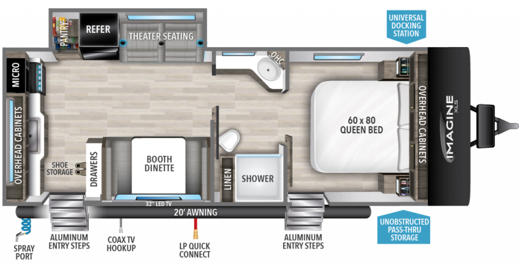 Hey everyone! Josh the RV Nerd heard you and has filmed a fabulous walkthrough for the 2023 Grand Design Imagine XLS 23LDE travel trailer. To hear what Josh thought was great, what he thought might have been nice (very small minor things), see the trailer for yourself, and find out if this camper is a good fit for you, check out the video below. Here’s a reference guide to help you quickly find the different aspects of the 2023 Grand Design Imagine 23LDE camper showcased in this video.