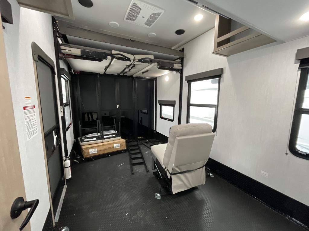 Of course, we have to talk about the garage when talking about a toyhauler. The Momentum garage has a couple unique features that aren’t in other toyhaulers. For one, this garage has a garage-camera prep. This way owners can check on their toys or kids, or whatever else they decide to put in this area.
