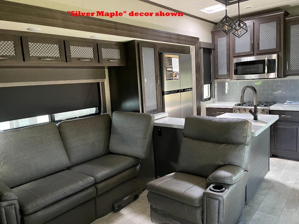 The living room is where this camper separates itself from the rest. When you step foot inside the 395MS you are greeted by the kitchen and living room areas.