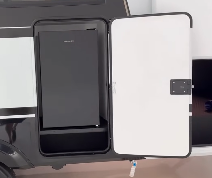 But the real star is the sleek outdoor 12-volt Furrion fridge that keeps your drinks cold without draining power.
