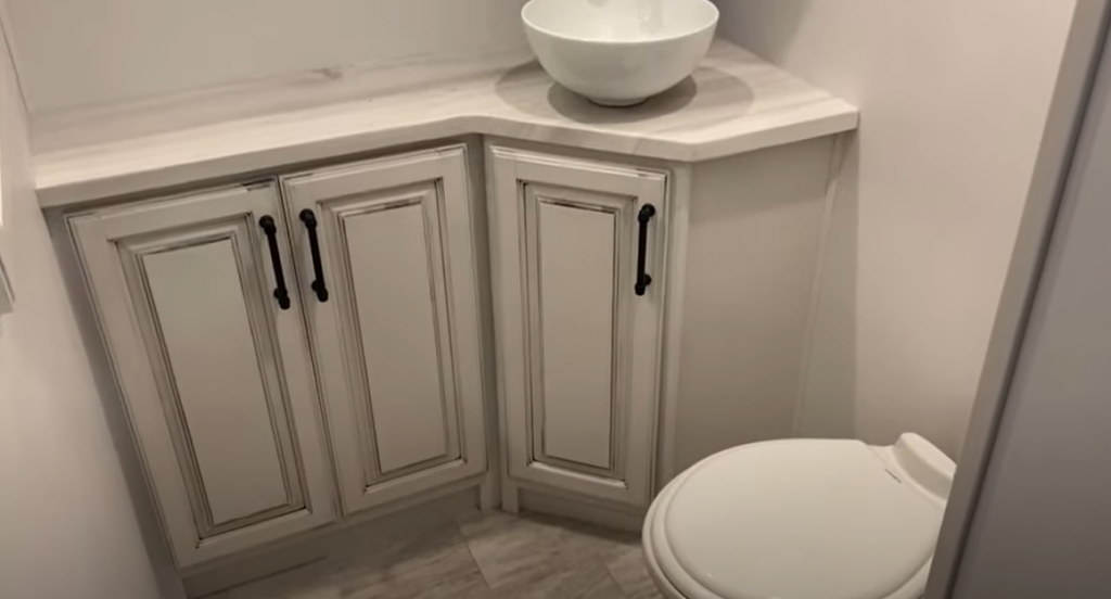 The front bathroom is also extremely well executed. The shower gives plenty of head room to even those who are taller and includes a height-adjustable shower head. The vanity includes two sinks and an ample amount of cabinet space.