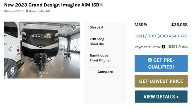 You’ll know you’re looking at an RV with these requirements if the dealer’s website shows an RV’s price as MSRP with a button or link that has wording like: