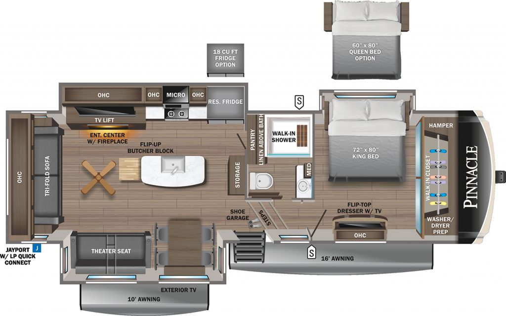 So, you’ve been looking at luxury fifth wheels and you’re highly considering a Pinnacle, but you need more info to decide which Pinnacle floor plan is right for you? As an expert on Jayco RVs, I’m here to share the 6 floor plan options, their specs and who they may be good for.