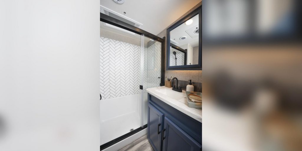 - Residential Style Features: Feel like you’re at home with a residential sized fridge and solid surface countertops!