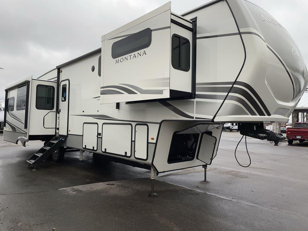 - Keystone Montana: The Keystone Montana is another popular fifth wheel. They have been around for a long time and have a huge customer base. If you don’t like what you see on a Pinnacle then, by all means, check out our Keystone inventory.