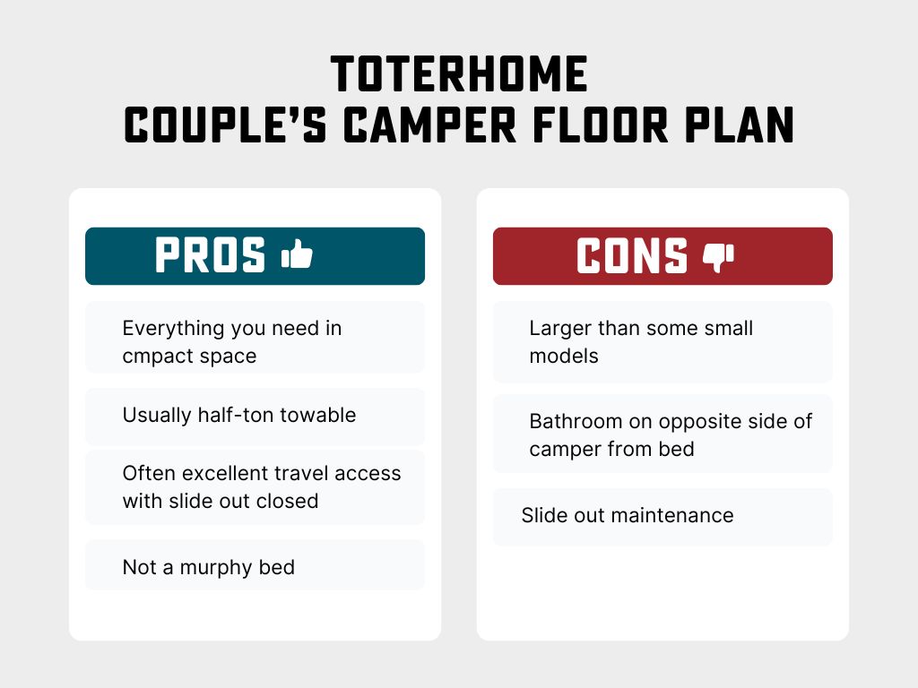 We can help! This guide explains the different floor plan types for smaller couple’s travel trailers with standout models that fit each floor plan type.