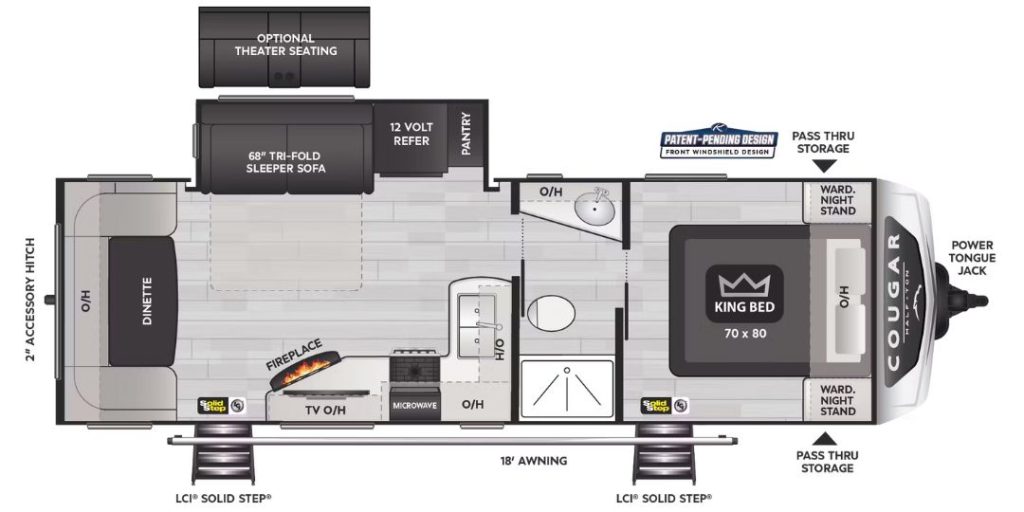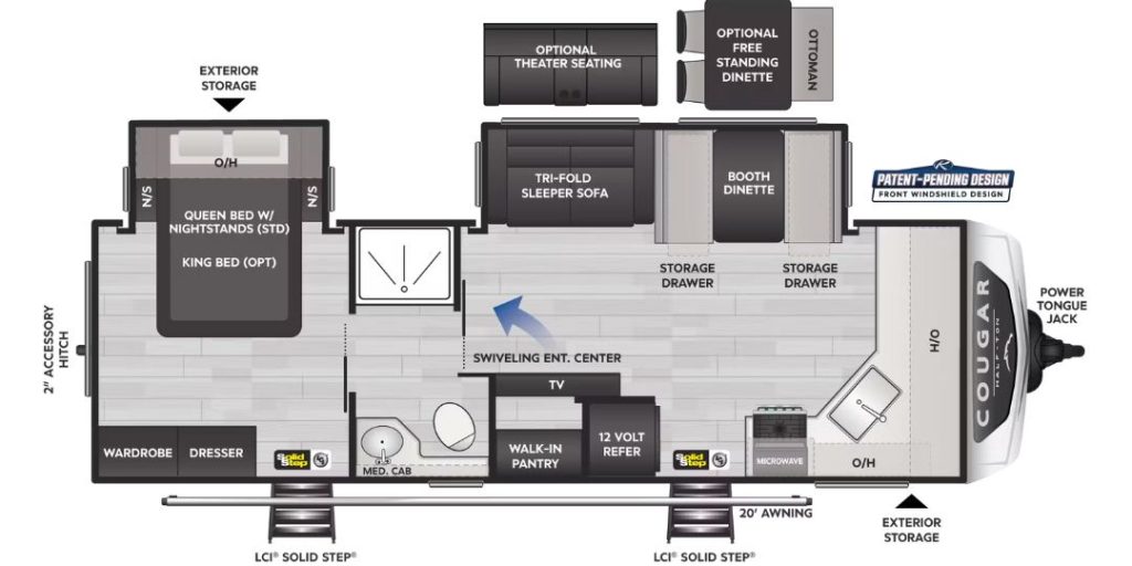 If you want more window coverage on the camp side of your RV this is the layout for you.