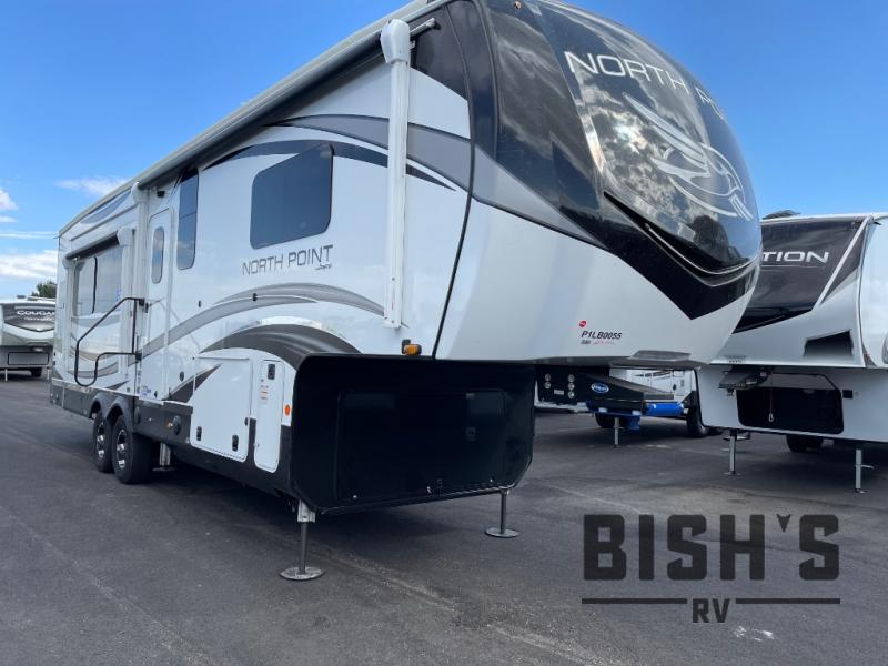 The Jayco North Point 310RLTS is a luxury fifth wheel designed for couples or families who want to enjoy the comforts of home while on the road. North Point 310RLTS campers cost between $82,000 – over $100,000. This fifth wheel is spacious enough to accommodate up to 4 people comfortably.