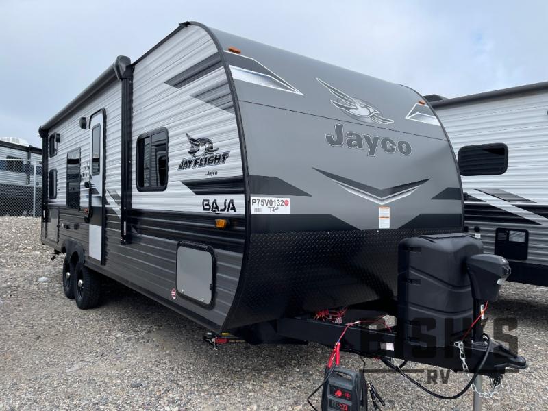 The Jayco Jay Flight 264BH is a great stick and tin option for those who are on a budget and looking for a lightweight, easy-to-tow RV. This travel trailer usually costs between $23,000 – $35,000 and can sleep up to 8 people, making it ideal for families or groups of friends.