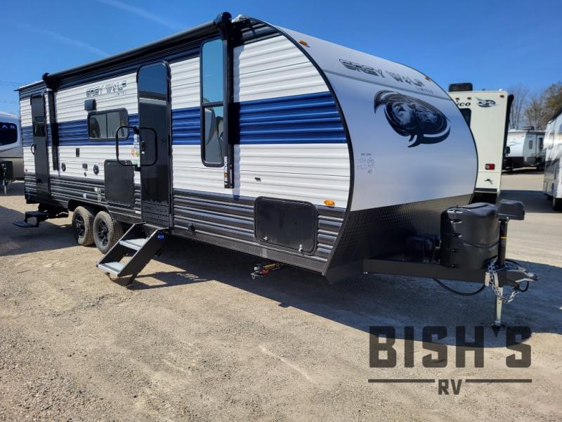 The Cherokee Grey Wolf 23DBH is a popular choice for those seeking a stick and tin RV that can accommodate a large group. The 23DBH costs between $28,000 – $50,000. This travel trailer can sleep up to 8 people with a queen-size bed, double bunk beds, and a convertible dinette.