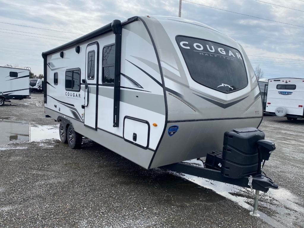 The Cougar 22MLS comes with Goodyear Endurance radials and a tankless water heater for comfort in any temperature. The interior feels spacious, thanks to the vaulted ceiling and front windshield. The absence of a bedroom privacy wall and the location of the bathroom next to the kitchen are minor considerations.