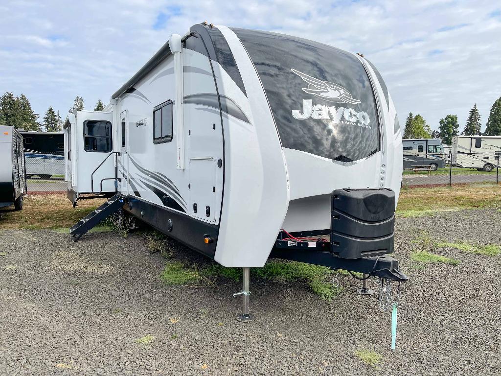 The Jayco Eagle 330RSTS is presented as an excellent option for full-time living. It offers spaciousness, bed slides, washer/dryer hookups, ample storage, and large holding tanks. The Eagle 330 RSTS is described as a flat deck fifth wheel, providing the look, feel, and functionality suitable for full-time couples camping.