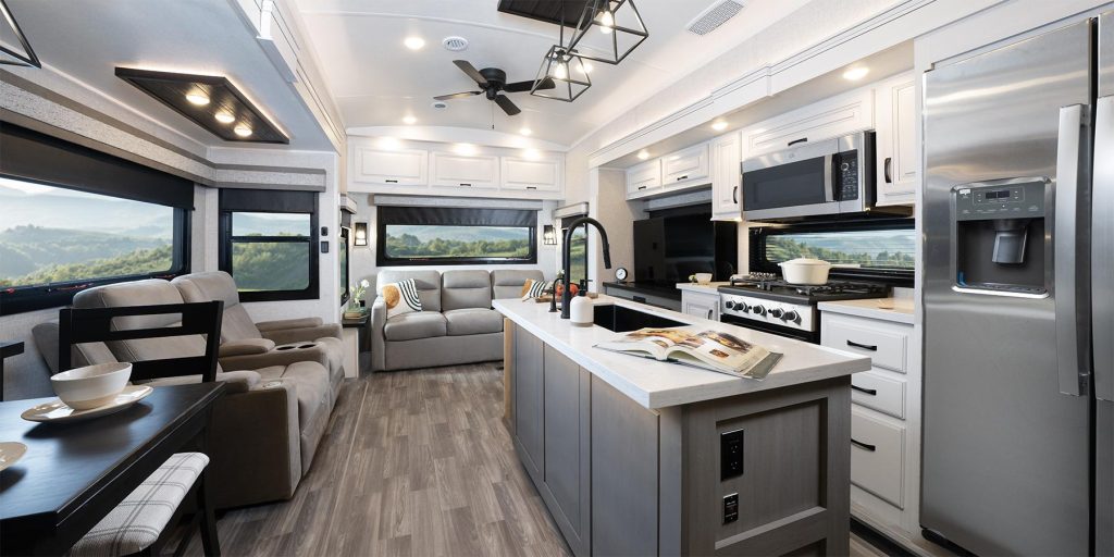 A roomy and comfortable living area allows you to relax and unwind after a day of adventure. Consider fifth wheels that offer open floor plans and large windows for natural lighting.