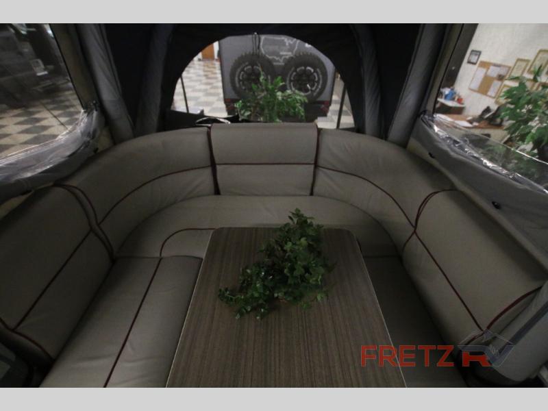 One of the best things about these compact campers is the spacious dinette that easily converts for additional sleeping space. You’ll love that there is plenty of space around this dinette to give your entire family a spot to enjoy while you’re having dinner together.