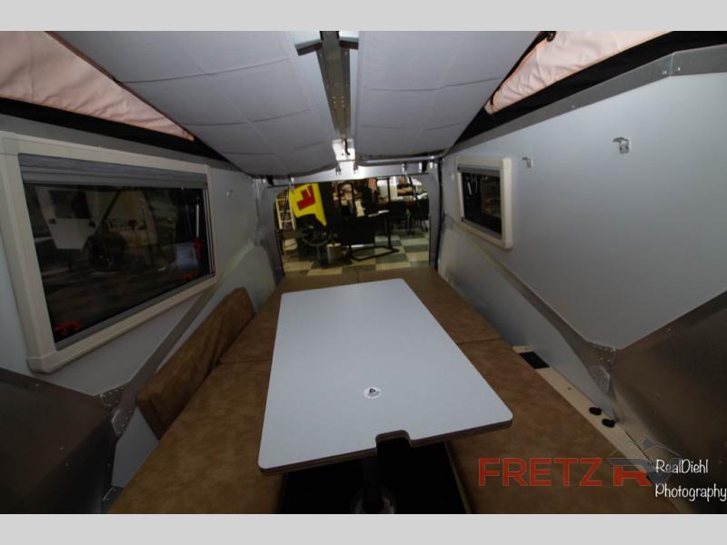 The large dinette in this unit converts easily to a bed to make it easy to make the most of your space. You’ll find that the table comfortably seats your whole family, and you’ll love that the pop-up roof gives you additional headspace. There’s a storage tower for everyone’s things to help you stay organized during your next trip.