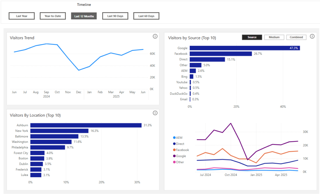 - Source: Where the visitors originated from.
